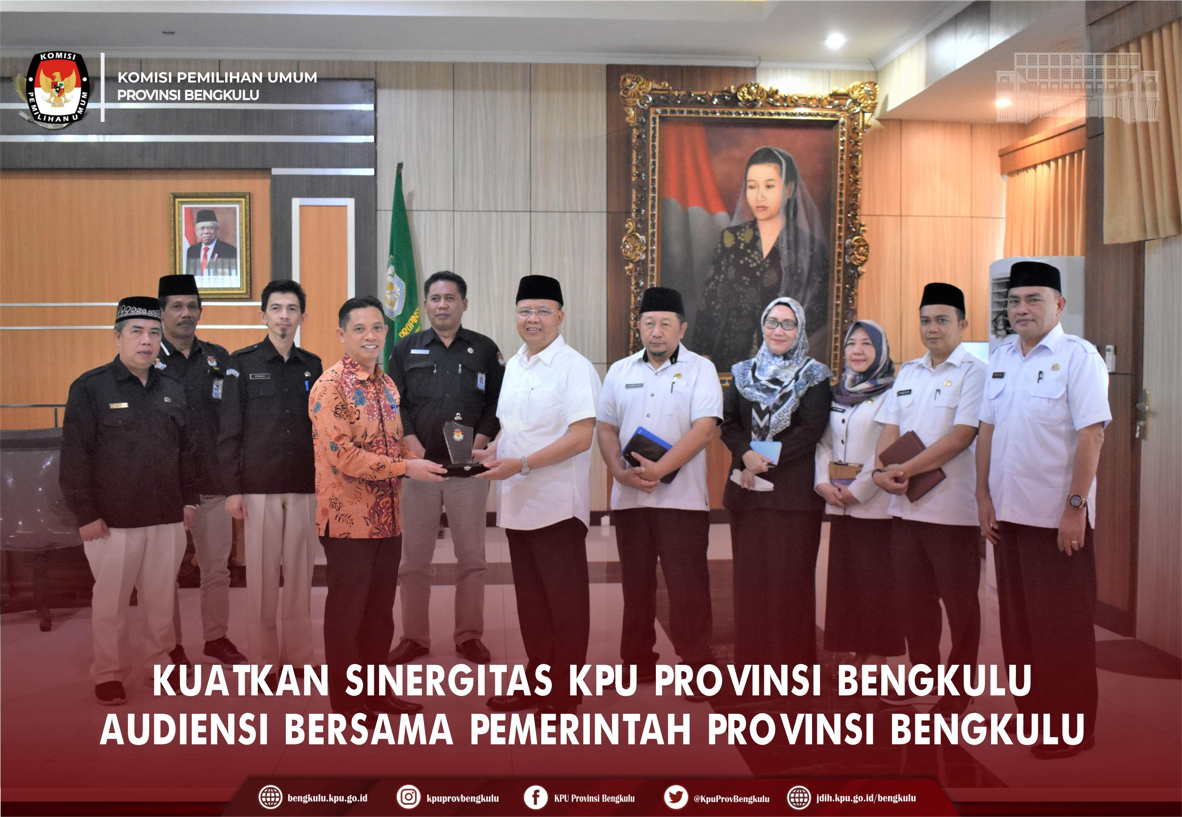 Bengkulu-bengkulu.kpu.go.id, Ketua KPU Provinsi Bengkulu Irwan Saputra bersama Sekretaris Kemas M Ajir didampingi Kabag KUL Sudirman, Kabag TPPPHHS Oktan Huzaeiry dan Kabag Rendatin Hamzah melaksanakan Audiensi dengan Pemerintah Provinsi Bengkulu, Rabu (13/7). Kunjungan audiensi KPU Provinsi Bengkulu disambut hangat Gubernur Bengkulu Rohidin Mersyah diruang kerjanya didampingi Pj. Sekda Fachriza Razie, Kepala BPKD Yuliswani, Kadis Dukcapil Diah Irianti, Karo Pemkesra Syarifudin, Kabid Pengelolaan Adminduk Disdukcapil Taslim Arsi serta Kabid Komunikasi Politik dan Kemasyarakatan Kesbangpol Deva Agustha.