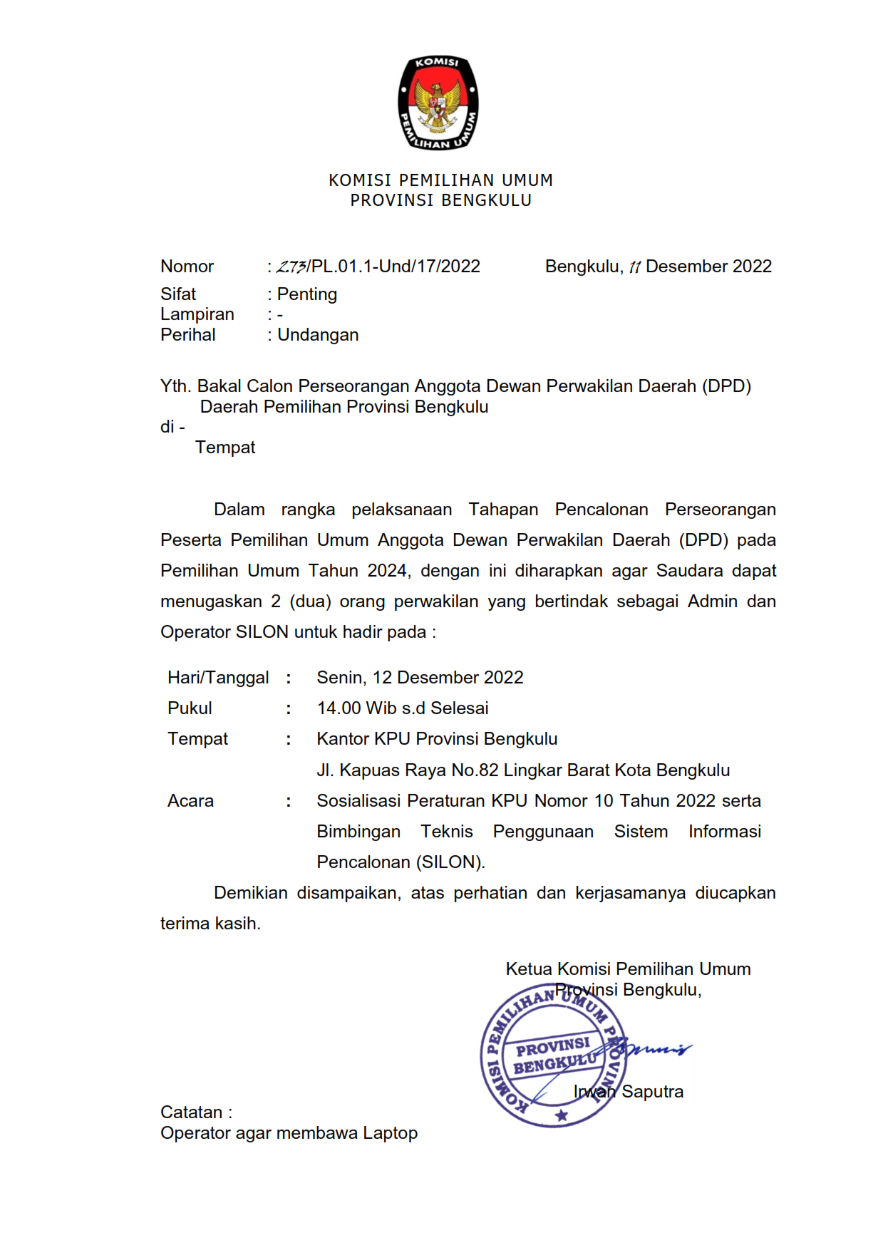Bengkulu-bengkulu.kpu.go.id, KPU Provinsi Bengkulu telah melakukan Rekapitulasi Daftar Pemilih Berkelanjutan (DPB) bulan September 2022 yang bersumber dari Rekapitulasi DPB di 10 KPU Kabupaten/Kota se-Provinsi Bengkulu. Rapat Rekapitulasi dilaksanakan pada Selasa tanggal 4 Oktober 2022.